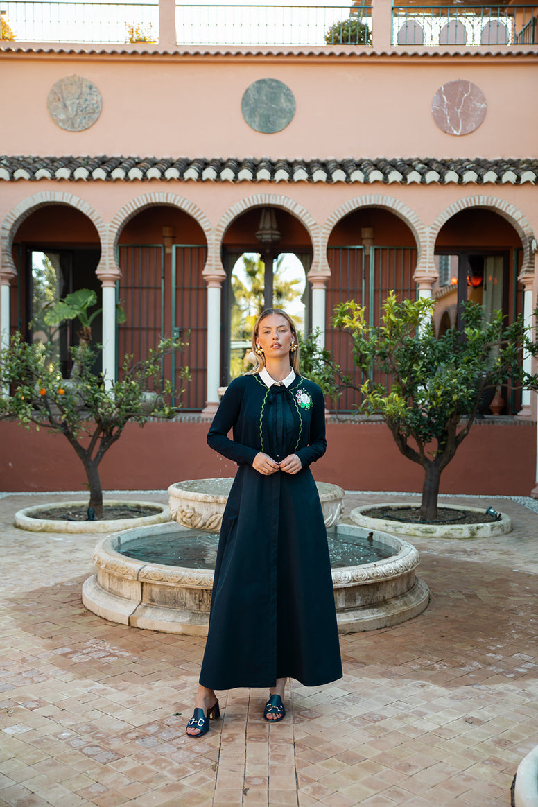 This simple cotton dress is the perfect base dress for any top, with a cute contrasting collar. It can be worn on its own with just a shell underneath or dress it up with our coordinating top CH329B