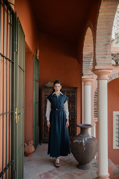 Effortless and flattering, this jersey sleeveless dress combines comfort with modern detail. The soft, stretch fabric moves with you, while the elasticated waist defines your shape for an easy, everyday fit. A subtle CF square detail at the front adds a touch of structure and style, making it perfect for relaxed days or casual outings.