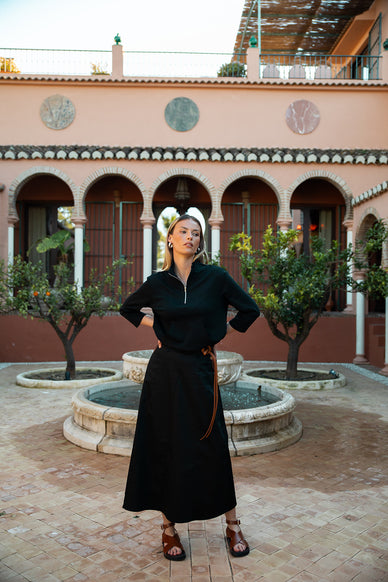 Combining sporty ease with cozy texture, this knit half zip top features a relaxed silhouette with dropped shoulders and a practical front pocket. Its versatile design makes it ideal for layering or wearing solo on laid-back days.