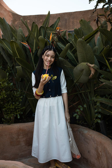 Midi Sleeveless Top with Buttoned Attached Solid Skirt